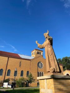 Our Mt. Alvernia is named after the mountain in Tuscany, Italy–La Verna which was given to St. Francis by Count Orlando of Chiusi della Verna to be used as a hermitage. The Franciscan sanctuary remains in use today. It is here that St. Francis received the Sacred Stigmata or the wounds of Christ.